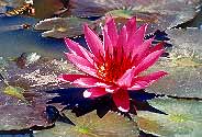 den herrlich blühenden Seerosen, die eindrucksvoll auf einem Fischteich