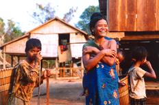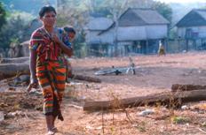 Boden der Veranda von Nifes Pfahlhaus ein. Hier lebt er mit seiner Frau und
