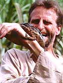 ist er auf eine Schlange getreten. Gott sei Dank war er barfuß (Schuhe im