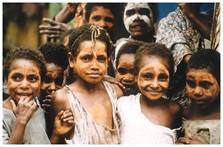 ![]() das Dorf, das nur einen Fußmarsch von einer guten Stunde von Menyamya entfernt lag, zu verlassen, fing Jo bitterlich an zu weinen. „Was ist denn passiert“, fragte ich, und er gab mir auf Pidgin zu verstehen, dass nur alle 2-3 Jahre ein Weißer in dieses Dorf kommt. Es sind dann immer zugeknöpfte Naturforscher oder Wissenschaftler, die nicht gestört werden wollen. „Touristen oder einer wie Du waren noch nie hier und noch nie hat ein Weißer hier übernachtet. Wieland ist der erste, der hier geschlafen hat, und das für drei Nächte in meiner Hütte, I'm happy, I'm happy, I'm very happy.“ Er schluchzte es mit einer tränenerstickten Stimme dreimal, denn von nun an war er der angesehenste Mann in seinem Dorf. In etwa 2500 m Höhe gehen die Ur- und Regenwälder in Nebelwälder über. Ein Großteil der Bevölkerung lebt hier, denn das ist der beste Schutz gegen die todbringende Malaria. Die Überträgerin, die Anophelesmücke, ist in solchen Höhen nicht mehr lebensfähig. In dieser kühlen, Wolken verhangenen Traumwelt wachsen riesige urzeitlich Baumfarne. Moose und Flechten bedecken den Boden und die Baumstämme. Bis zu 30 m hohe Bäume, teilweise mit Brett- und Luftwurzeln, werden von gewaltigen Lianen überwuchert, die wie Seile herabhängen. Die verwirrende Vielfalt der Pflanzenwelt ist beeindruckend. Häufig trifft man auf kleine, malerische Wasserfälle, die in allen Blautönen durch das dichte, satte Grün des Waldes sprudeln. Wie auf Schmierseife rutschten wir auf unseren Hosenböden die lehmigen, schlammig-braunen, steilen Abhänge herunter. Ein bergab Gehen war unmöglich. Wer es trotzdem versuchte, landete postwendend wieder auf seinem Hinterteil und hatte alle Lacher auf seiner Seite. Wie begossene Pudelwelpen, die sich in einer mistigen, tiefen Pfütze gerauft haben, sahen wir aus, als am Abend das kleine Dschungeldorf wieder erreicht wurde. Die Papuas wollten viel über mich wissen, insbesondere, aus welchem Land ich kam. Die Weißen, die sie gesehen hatten, kamen meist aus Australien oder den USA. Da ich aus Deutschland war, interessierte: West oder Ost? Ich war frappiert. Sie wussten nichts von der deutschen Einheit. Auch in der Schule wird noch gelehrt, dass es zwei deutsche Staaten gibt. Einer wissbegierigen Lehrerin erzählte ich vom Fall der menschenverachtenden Mauer. Sie notierte in einem Schulheft: 9.11.1989 Germany no borderline! Communism broken down! In einigen Urwalddörfern hatte man noch nie einen Weißen gesehen. Bei meiner Ankunft schrieen die Kinder vor Angst und kletterten auf hohe Bäume. Wer keinen mehr abbekam, versuchte sich Hals über Kopf im dichten Gestrüpp zu verstecken oder rannte wieselflink zurück ins nahe gelegene Dorf. Später versuchten sie dann meine helle Haut zu berühren. Vom lauten Geschrei angelockt, kamen die Erwachsenen herbei. Einer fragte mich: „Bist du ein Australier ?“ Ich erwiderte: „Warum ?“ „Vor zwölf Jahren habe ich einen Weißen gesehen und der war aus Australien. Du musst ![]() ![]() Spät nachmittags, als ich klitsch nass von meiner täglichen Buschtour zurück kam, winkte mich ein Bewohner hinter seine Pfahlhütte, an die er zwei adipöse Schweine festgebunden hatte, um mir etwas zu zeigen. Er wollte von mir wissen, ob ich diese Pflanzen kenne, die er dort kultiviert hatte. Es war Cannabis. In der Hütte fielen mir mehrere Paradiesvogelbälge auf, die an den aus Bambus geflochtenen Wänden neben Pfeil und Bogen hingen. Am darauf folgenden Tag zeigten mir die Jäger stolz ihre selbstgebauten Gewehre. Als Läufe dienten Wasserrohre, mitgebracht aus der Stadt, die Kolben originalgetreu nachgeschnitzt. Zusammengehalten wurden die abenteuerlichen Waffen mit breiten Gummistreifen, geschnitten aus alten Autoreifen. Beim Nachladen musste jedes Mal der Lauf abgenommen werden, um die Patrone einzulegen. Um den Schuss auszulösen, zog man an einem dünnen Gummi, der einen rostigen Nagel auf die Zündkapsel schnellen ließ. Mac Guyver lässt grüßen!