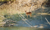Der Axishirsch fällt durch seine weiße Fleckung auf. Er